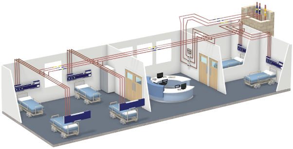 El campo crítico de la atención al paciente requiere aire médico ultra limpio, purificado y administrado en quirófanos y camas de hospital con absoluta fiabilidad. El suministro de aire médico de un hospital es un servicio vital de soporte vital, que mantiene la respiración de los enfermos críticos durante la ventilación mecánica.